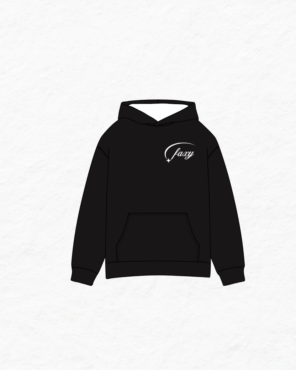 Moletom com capuz, bolso frontal e bordado ‘Faxy’ no peito. Veste até o G4, e ganha vida nova quando combinado com baggy de moletom ou calça de veludo. A parte de trás pode ser personalizada com iniciais, simbolos ou frases: o look ideal pra quem curte expressar estilo de dentro pra fora.”